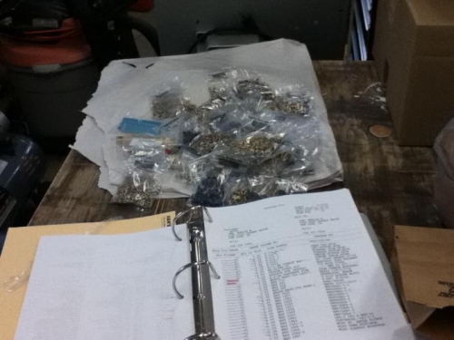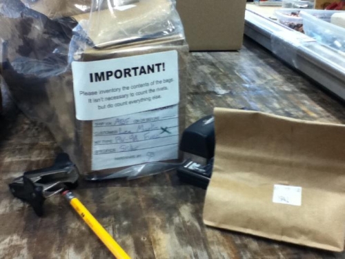 Doing a complete inventory of Bag 'O Rivets. Check each bag in big bag, cross check between master inventory list and detailed inventory list of bag contents. Instructions say to carefully check contents of each bag but not required to count rivets (thank goodness!!) Minor missing numbers of washers nuts bolts. LOTS O STINKING DIFFERENT PARTS THAT ARE ALMOST THE SAME SIZE!!