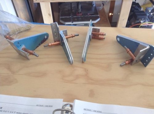 Trying to figure out placement and fit of ribs per drawings I thought it would be easier to cleco together the attach brackets so I could see where and how they really fit with ribs. Made visualizations with plans and documents easier. Now I can grab a "bracket" and test fit when things look confusing.