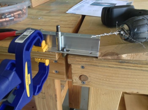 Attached K1000-3 nut plate to each hole in 6 of the attach brackets using a screw and nut plate with a bunch of washers. No cleco would hold things in place (too big or too small). Drilled each hole / nut plate one hole at a time. Ready to countersink for rivets..