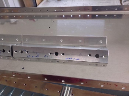 CS the rivet holes for the attach brackets by clamping bracket to spare piece of wood and hanging hole off to the side. Worked well. Two or three end holes had some wobble because the CS cage would not rest completely on the bracket. Hopefully it wont be too bad. Need to CS the nut plate rivet holes on the spar but the CS tool wont get close enough to sides for two holes. Will need to figure out how to do by 'hand'. Used extension of deburring tool and CS bit. Fit in drill and produced pretty good CSs.
