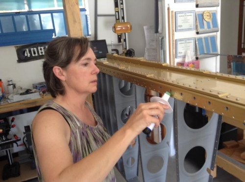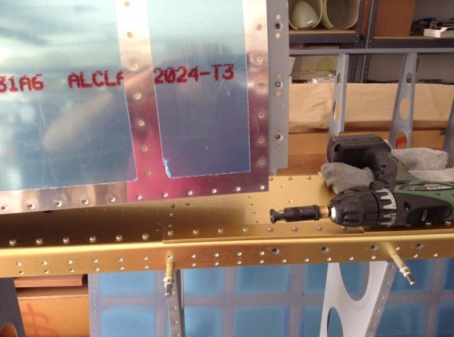 Main spar rivet holes (3-xx) need checking. Some are not deep enough. Re-set counter sink and double checking each hole. (with test fits between skin and spar). Ran cs through all holes. Re-Alodined holes.