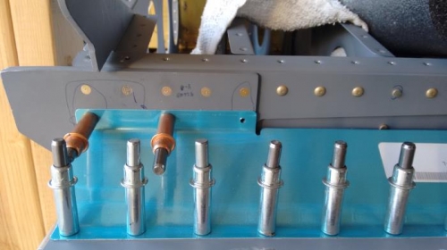 Drilled out holes to size and back drilled 4 holes not already in spar