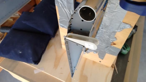 Drilled bracket holes and spar holes. Final size for AN3 bolts is #12. Step drilled holes (starting #30) to #13 and used #12 reamer to final size. Found bag with aileron hardware and installed bolts / washers / nylock bolts. Torqued. Marked with nail polish (torque marker!) Double checking show I used the wrong net on one bolt and wrong washer on two bolts. Thin washer is for nut plate bolt. shorter nylock nuts are used later. NOTE TO SELF DOUBLE CHECK WITH PLANS