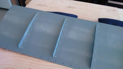Continue riveting stiffeners to skins