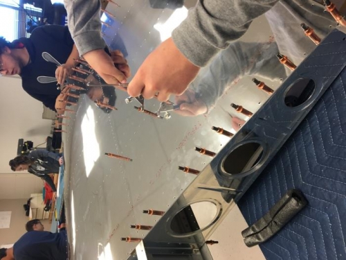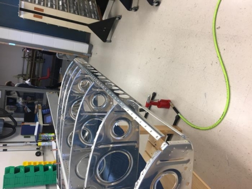 finshed riviting the W-1208-L Nose ribs. Clecod and rivited the right stub spar assembly. and started clecoing the W-1201-R skin to the nose ribs and spar assembly.