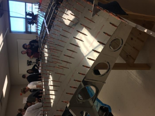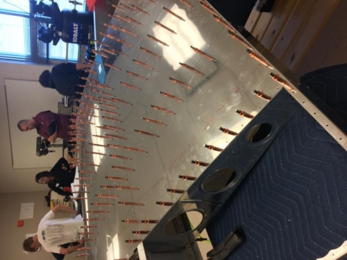 Clecod the W-1201-R inboard wing skin and clecoed teh W-1201A doubler, Clecoed W-1201-R outboard wing skin.