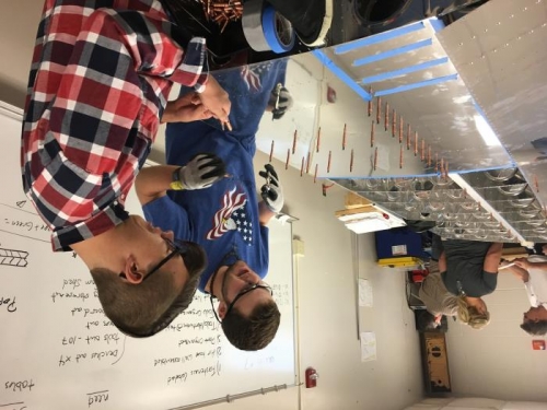 We finished riveting the skin along the leading edge except for the area for the step doubler. We clecoed the W-1201B-R to the wing assembly and began riveting it.