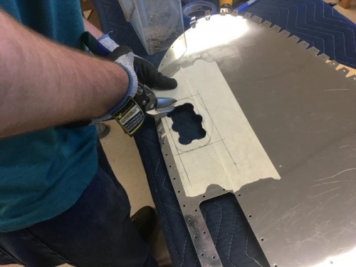 We cut a hole in the wing close panel for the nav light and riveted on the nutplates for the AOA access panel
