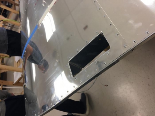 Riveted and clecoed the left skin tip, match drilled the W-1204H-L