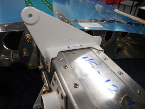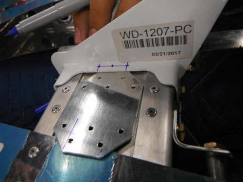 Deburred holes drilled parts called out in survace bulletin. Center punched six AN426 rivet locations shown in to the WD-1207 Stabilator Horn