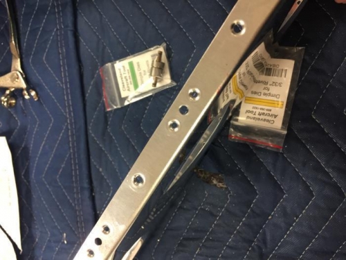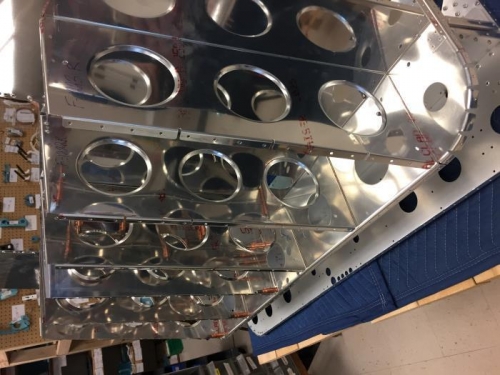 Today we riveted and dimpeled F-1222 through F1223 left and right to the bulkhead to F-1224_ L and R. We also dimpeled the nutplates and started to rivet them on too. Brian, Awzy, Ryan