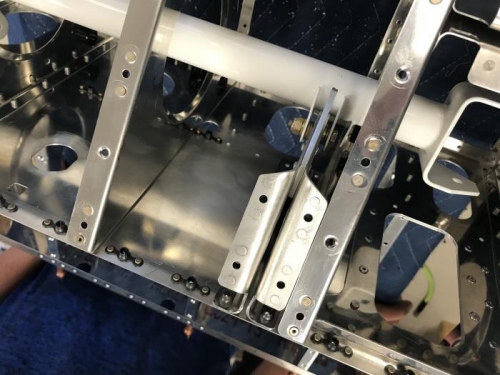 We attached the bulkhead to the front of the plane and flippen the whole part over. We incerted bushings and put the bottom side skins F-1253-R onto the plane.