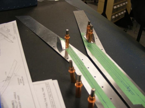 we deburred and cut part 1202 and the clecoed it to part c1210 and then we drilled the 1/8th hole then matchdrilled one hole for one 1210 part then ligned up the second hole for the second part
