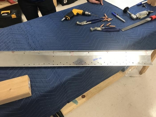 Nest VS-1212B-R upper spar cap to VS-1203 to reference line through #30 hole and clamp. Nest VS-1212A-R lower spar cap into VS-1203. Align bottom edges. Match drill #30 holes starting from bottom at ever 4th. cleco each hole as drilling. Match-drill #30 to the 4 #30 holes to the VS-1212R-B. Cleco. Take apart and deburr then reassemble.