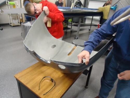 Machin countersinked all the #40 drilled holes on the top cowl and on the bottom cowl, except holes drilled on the front of the top and bottom cowl.