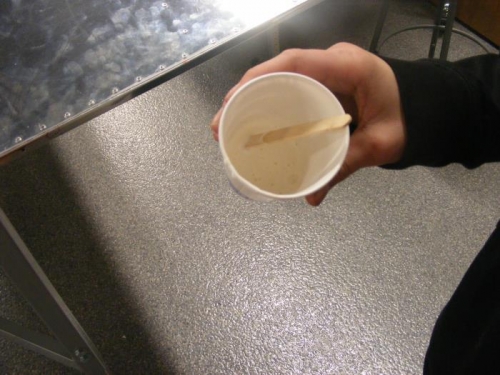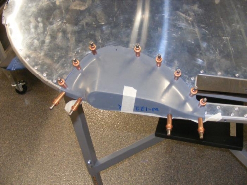 They finished clecoing the part onto the wing, then they added the substance to the piece and applied it to the wing