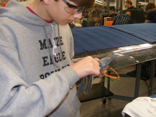 drilled 3/4 in. holes in the fiberglass mounting plate, attached mounting brackets for lights, filed holes for light attachment.
