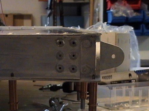 finished riveting of left stabilizer, replaced wrong rivets on rear attach brackets of both stabs ( used shorter RV13 instead of RV19 )