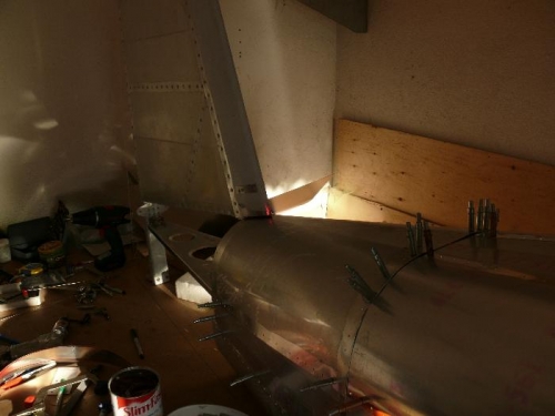 drilled horizontal bulkhead to Fus 36, fitted fin to tail for first time, worked on FUS 29- duobler strips bcs edge distance violation on two corner tabs