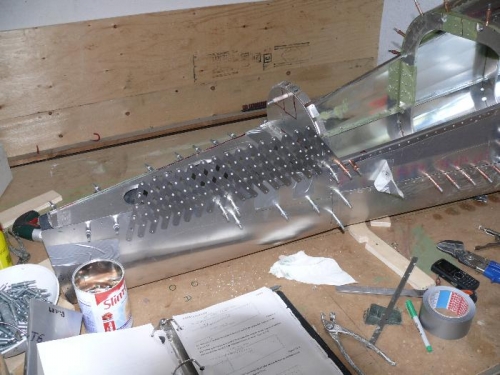 fitted and drilled FUS 89 stiffeners to side of tailcone, after everything was clecoed together Inoticed that fin was about1cm off vertical to right+#ß!§"$§%$/%&(::::..........