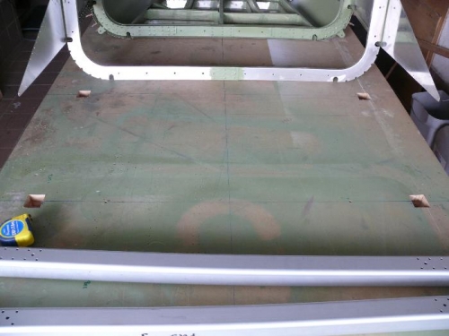 marked land cutted ocation of landing gear on table per manual, drilled FUS5 carrythroughs, and FUS 2 gussets