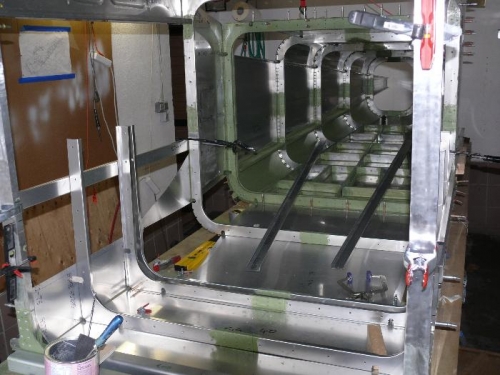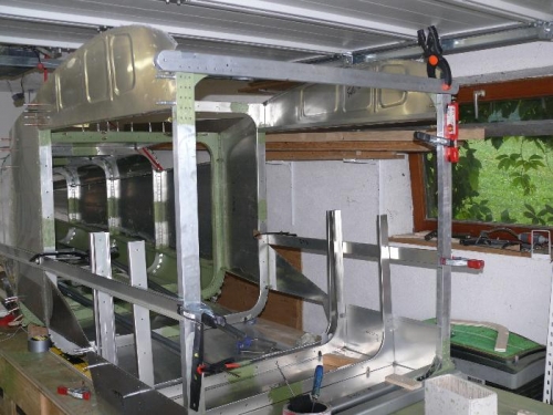 cut the cage bulkheads, made openings for rear landing gear fittings in FUS40, made door sills out of ST28 0,32 and drilled angle brackets for them