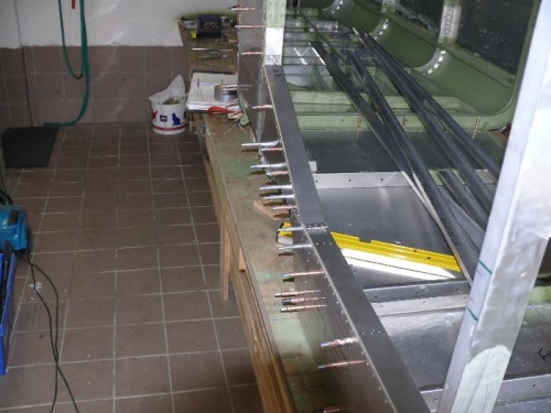 drilled door sills and stiffeners + angles on right side, fitted angles under root rib