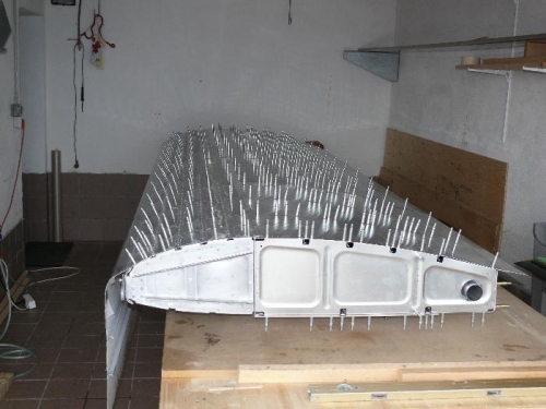 flipped wing, drilled front spar, bottom rear and main spar # 40, fitted wing skin doubler,made tank baffles