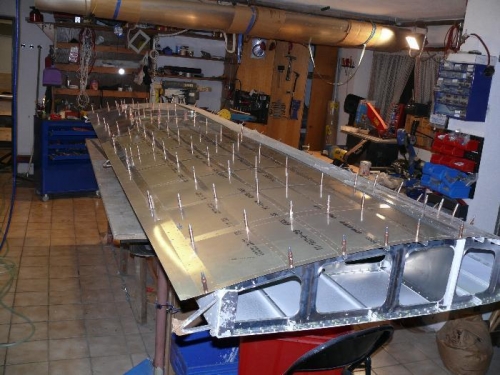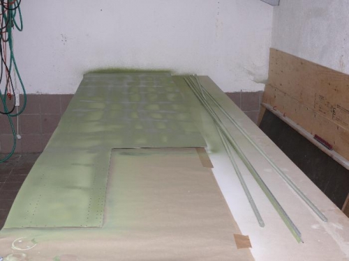 primed top part of stringers,ribs and spars, riveted and prosealed filler neck to top tank skin, some clean up...