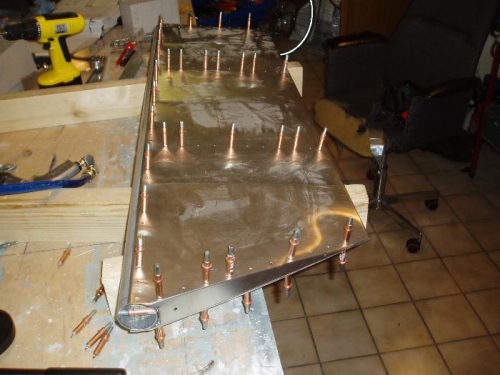 assembled elevator web, drilled ribs and doublers for outboard rib, right elevator ready for priming and rivet action...
