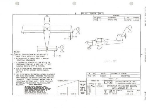 For the rudder, I've decided to add static wicks based on Dayton-Granger diagrams shown in image 1. The static wick is Dayton Granger 16165. Also, http://www.myrv10.com/tips/staticwicks/staticwicks.html and http://mouser.org/projects/rv-10/staticwicks.html