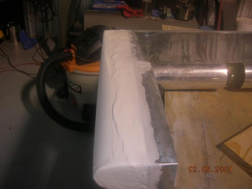Sanded the first coat of micro on one tip. Obviously I didn't put enough on, because I had to mix up some more and put on another coat. While that was drying, I trimmed some more on the rudder bottom. Jim came over and I had 12 rivets that hold the F768 to the F902 that needed to be set, so he stayed and helped me.