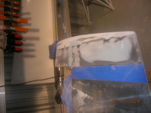 I gave the elevator tips one more coat of primer and while it dried I coated the a/p bracket with primer. When it dried I wet sanded it with 320 and took most all of the primer off. I had a couple little spots that I used some of the 416 on. Then I mixed up some Rage and worked on the rudder top cap.
