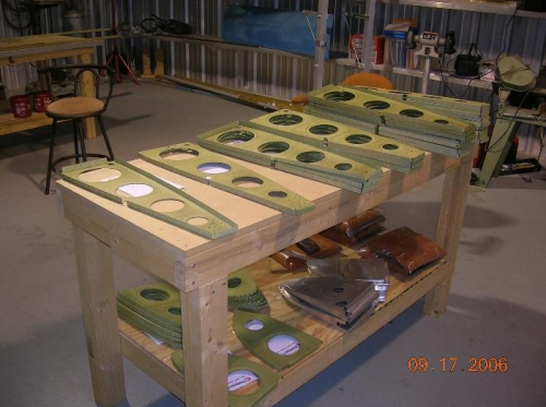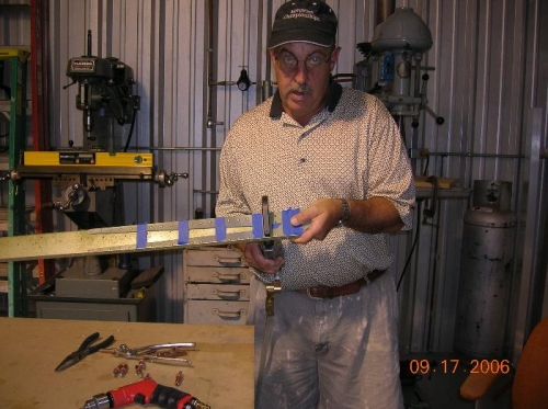 We got around pretty early this morning and primed all the ribs and the rear spar. Reva wiped all down with MEK and I sprayed the primer. We did the ribs first and finished with the rear spar just as I exhausted the second batch of primer. One flange will just have to have some GBP-988 instead of the vinyl wash. I don't think it's too big of a deal as some people don't prime anything.After a sufficient drying time, I riveted the rear spar where I could. Sure felt good to actually assemble something again, instead of prep work. It takes forever to prep parts. I know where they get the 51% part of this now.After finishing the rear spar, we laid the left main spar on the table and began clecoing in the ribs. You have to look at the drawing pretty carefully for this. It's easy to get ribs in the wrong place. Got all together and match drilled the front and rear spar and deburred the rear spar and ribs before calling it a day.