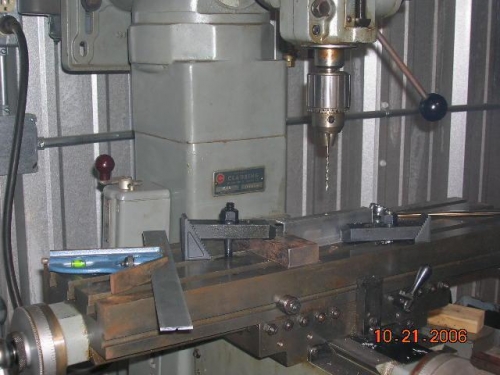 I got back from Texas last evening in time to see the Homecoming Game here at the high school. Today I started out about 11:00 after unpacking and visiting a couple of people here. I had a good time in Texas as I got to go to Hicks Field and see Avery Tools and was fortunate to see Jay Pratt. He graciously spent about 2-1/2 hours with me talking RV's. Those guys that fly out of there are so lucky to have such a good group of people around.Anyway, I started on the left tank today. While reading the instructions, I gathered that the dimensions on the tank attach brackets were very critical so I set them up in my mill and used it to drill the first hole in each flange. While they were in there and the chuck was exactly where it was supposed to be, I chucked a sharpie in it and marked the center line EXACTLY thru the center of the hole for the length of both flanges. Sure was easy to get correct that way. When they were all done I attempted to pop rivet on the brackets per the instructions only to find out that my pop riveter wouldn't get close enough. It's a good one so I didn't want to "modify" it. I went to the hardware store and bought a cheap one. While looking for the prescribed pop rivets, I found that I had some bags that hadn't been put away so I finished the day doing that.