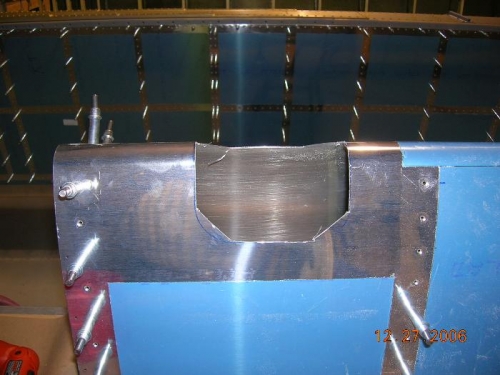 Today I readied the Leading edge for the right wing for riveting. I had already fitted it and match drilled it so I deburred all the holes and the edges. I then cut the hole for the landing light like the one in the left wing and fabbed or modified all the associated parts. It was fairly nice out so I primed the skin and the strip that joins the tank and leading edge. After the primer dried, I painted the inside of the skin where the light goes white. This one looks better than the left one as I painted this one before riveting it.