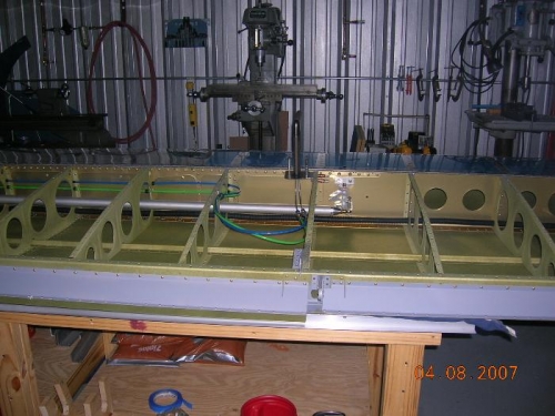 Today I started by riveting the gap seals on the left wing. Then I installed the aileron and set the pushrod. I fabbed both L and R W917 push rods and then went on to the pitot mounting. I had already fit the SafeAir1 mount and stiffner bracket to the rib and today I routed the tubing and secured it. I think I'm done with both wings, at least until after Sun 'N' Fun. I'm not going to put the bottom skins on until I return. I want to get my Tech Advisor to come look and maybe that will happen next week. Tomorrow, I'm going to start the fuselage.