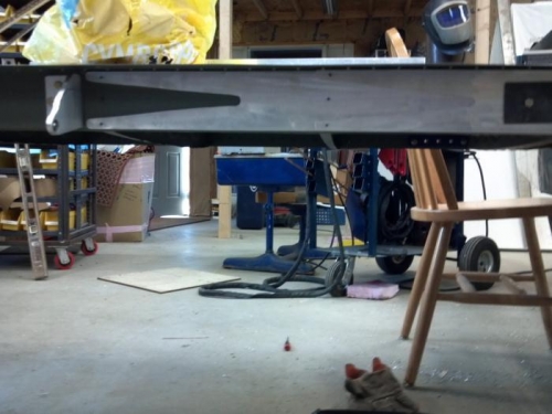 The powder coated blue main spar attach brackets (front and rear of main spar) were cut out on the hurco. Here we drilled the brackets to fit the spar from the fuse center section. We took the time to ensure we had exactly a 1.5 degree dihedral.