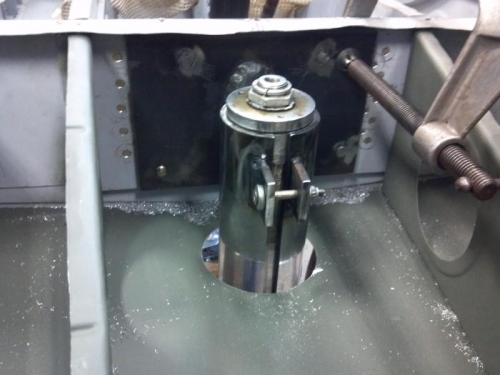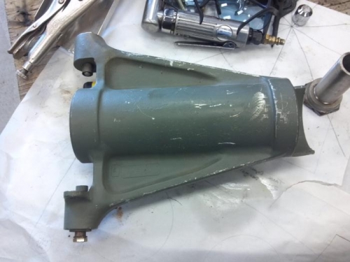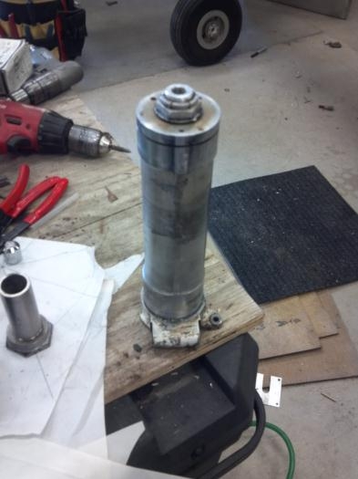 After some prolonged deliberation with myself, I determined that the lancair type nose gear that was installed is not adequate. Attention was given as to how to more easily mount the oleo strut type nose gear from a Piper. It was designed to be retractable. I needed a good way to use is as a fixed nose gear. I came up with a solution. Simple really... abandon the original retract housing and fabricate one from steel which can be welded to the nose gear mount plate I was already using. The clamp sytle fit is very very rigid! Now, just get a rebuild kit for the o-rings and a new schroeder valve and we are in business.