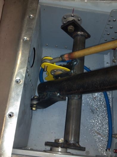 Tim was over and we worked on the front seat stick aileron bellcrank. We ran into a little problem with the travel to the right. I need to notch out some of the bellcrank support mount in order to allow some more travel. This is a unique setup compared to any of the RV's. I wanted to accomplish aileron movement with out banging the stick into my thighs. The aileron movement from the stick is now located at the top of the stick and the only movement of the lower stick assembly is fore and aft.