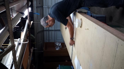 Drew line for spruce placement on work table