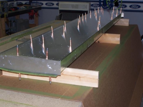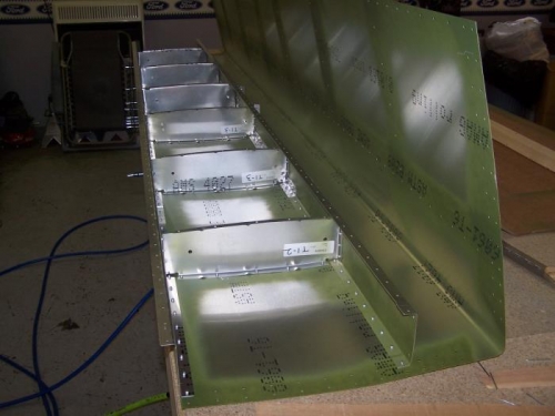 Sprayed internal structures with corrision preventative and started assembly of horizontal stabilizer. One side has skin riveted, other side needs the piano hinge deburred, treated and put in, then skin can be riveted.