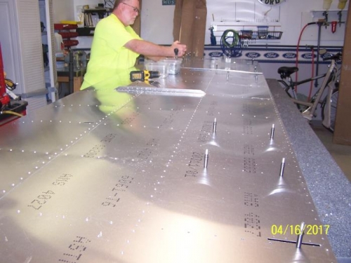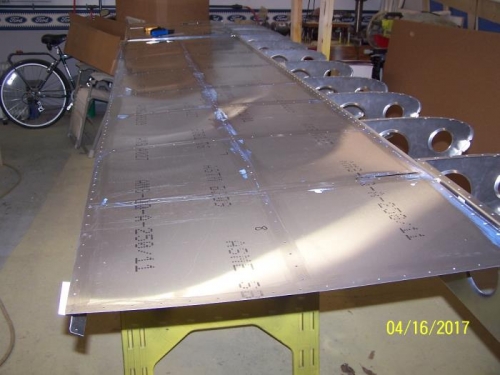 Finished corrosion protection on lower wing skins, clecoed into place and rivired skins onto spar and ribs.