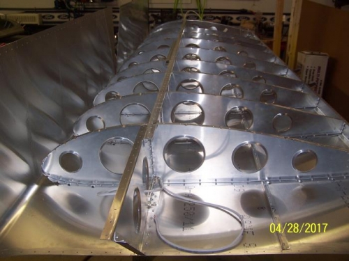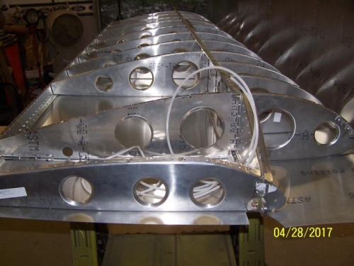 Finished deburring left wing and brushed on anti-corrosion. Ran & secured recognition and anti-collision light wiring and pitot/static tubing.