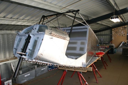 Riveted the cabin structure into place as well as temporarily mounting instrument panel support as well as top nose skin.