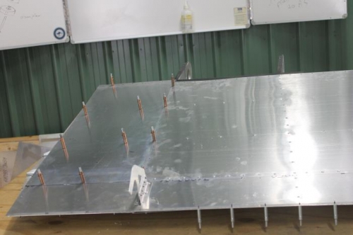 Found the skins for the end of the wing and clecoed them in place.