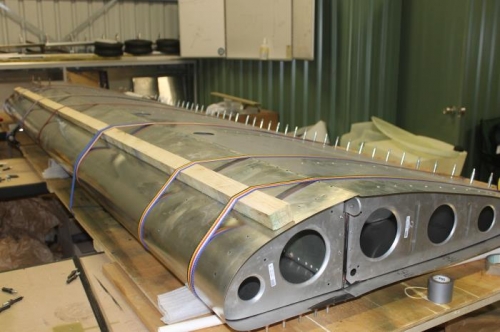 Now the fun start, started to bend the nose skin, trying to make sure I use as many straps as needed and slowly tighten and not rushing the process. Have about 10 mm to go here