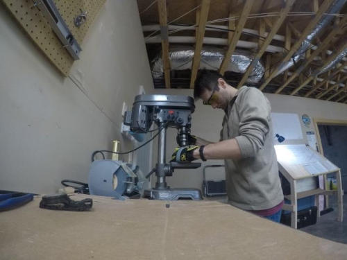Made up for lost time yesterday. Started with drilling the HS-609PP to HS-603PP, then enlarging the HS-709 holes in the rear spar. HS-412PP and -413PP were next, then an attempt at the HS-411/VA-146 assembly. Tried to drill the bearing assembly first with the air drill, but found that the drill press was a much better choice. While I had the #30 chucked up in the air drill, I went ahead and drilled the initial holes in HS-00003/HS-702/HS-810-1/HS-814-1 as well. Afterwords, I deburred all the holes, and started on tapering HS-810-1/HS-814-1.
