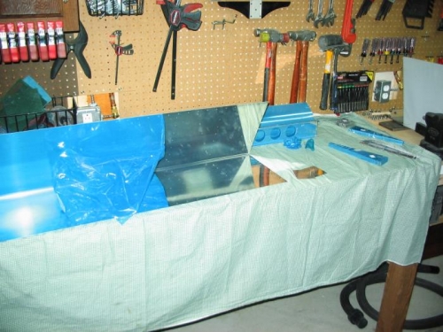 Clecoed the top wing skins on the left wing in preparation for my partner Todd's arrival so we cans start riveting them on. Since I had some more time, I decided to keep working on the aileron parts. Did a little deburring and blue plastic removal.