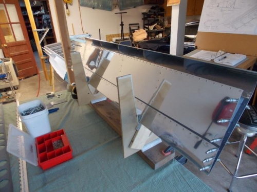 Clecoed and started rivetingthe leftflap. Pretty straightforward.